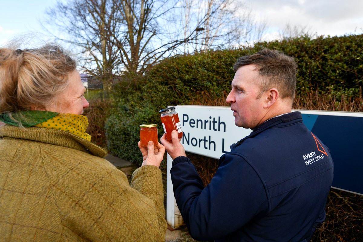 L - R: Jane Hasell-McCosh (Founder of Dalemain Marmalade Awards); Stephen Martin (Avanti West Coast Team Leader at Penrith)